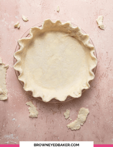 - Make-Ahead: You can refrigerate the dough-lined pie plate up to a day in advance of baking. You can also prepare the pie dough and wrap the disk in plastic wrap and refrigerate for up to 3 days. Let sit on the counter for about 20 minutes before rolling out. Once the pie plate has been lined with the dough and the edges crimped as desired, be sure to chill again for at least 2 hours before proceeding with the recipe.
