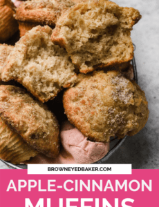 Aside from the robust apple flavor, the topping on these muffins is absolutely TO DIE FORโฆ a combination of granulated and brown sugar, along with cinnamon โ itโs a wonderfully sweet, crunchy coating and will make you want to save the top for last (at least, I did!).