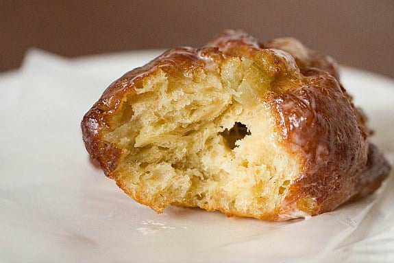 As for the glaze, using all my will power not to eat it by the spoonful, if you use my suggestions you’ll need to double or triple your glaze quantity. More smaller fritters, more surface area for the ooey gooey delicious glaze.