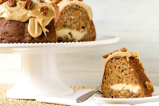Apple Bundt Cake with Cream Cheese Filling & Praline Frosting