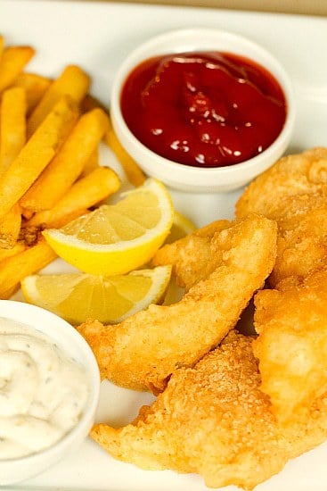 I was pleased with how relatively quick and easy it was to make – the longest part was waiting for the oil to heat up in the pot! The batter has a lot of flavor thanks to the beer and a generous amount of seasoning, which complements the fish really well. We ate our cod with tartar sauce and French fries, but I would also love to try it on a hoagie roll with pickles and tartar sauce to mimic that quintessential fish fry sandwich.
