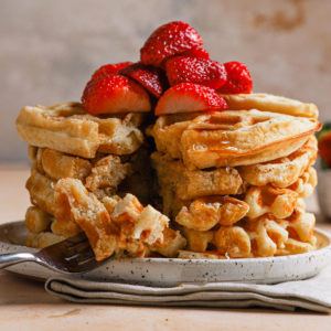 Belgian waffles are a total meal on their own but are also delicious with a side of scrambled eggs, your favorite sausage, or bacon.