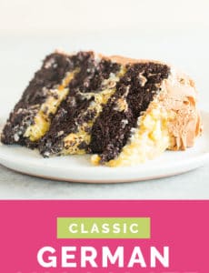 Up until I first made this cake, I assumed that it originated in Germany, due to its name. Turns out, itโs as American as the Big Mac. Who knew?!