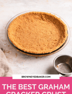Graham cracker crust is the base of so many amazing desserts โ cheesecakes, pies, bars, and more! Which makes it all the more important to have a tried-and-true, reliable recipe that you can use time and again. This thick, buttery, and DELICIOUS crust can be used for both no-bake and baked desserts; be sure to save it to your recipe arsenal today!