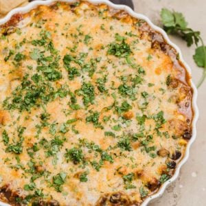 This warm black bean dip involves a few more steps than your typical dip recipe, but believe me when I tell you that it is absolutely, positively, 100% worth it. It is creamy and positively bursting with flavor thanks to black beans, chipotle chiles, adobo sauce, chili powder, corn, and an abundance of cheese (a must, of course!). Grab your favorite tortilla chips, a baguette, or some veggies and plan on not having a single morsel leftover. A party and game day must!