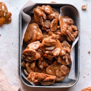- Gifting: Transfer the pralines to your gift container the day you plan to give them. Tins and cellophane bags are great options!