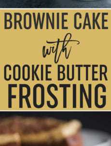 Not only is this brownie cake with that spectacular cookie butter frosting to-die-for delicious, but it’s crazy easy to make. The brownie cake comes together in less than 15 minutes, and the frosting takes about the same amount of time.