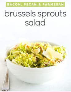 I was utterly amazed at how much I loved this season. I will eat Brussels sprouts, but I certainly donโt love them. This Brussels sprout salad totally converted me. Iโm sure the bacon didnโt hurt, either *wink*.