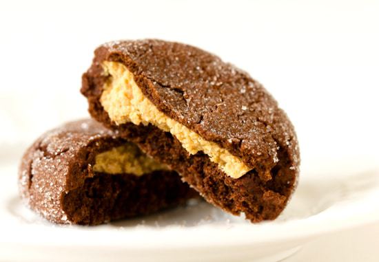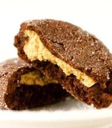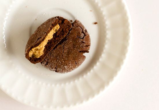 Peanut butter and chocolate. Chocolate and peanut butter. I donโt foresee any point in my life where I will be able to pass up that combination. My favorite candy has long been peanut butter cups, and my favorite holiday treats have always been buckeyes โ those awesome peanut butter balls dipped in chocolate. I canโt be trusted around either one โ Iโll down more than I can count. When I saw these cookies on Pinterest, I fell in love immediately. Theyโre essentially the cookie version of a buckeye or peanut butter cup. A chewy chocolate cookie with a fabulously creamy peanut butter center, these are absolutely irresistible.