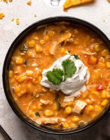 This thick and hearty chicken and corn chowder is full of chicken, corn, cheese, peppers, and just the right amount of smokey spice. Your whole family is going to love this warm and cozy soup, and it’s simple enough to pull off on a weeknight!