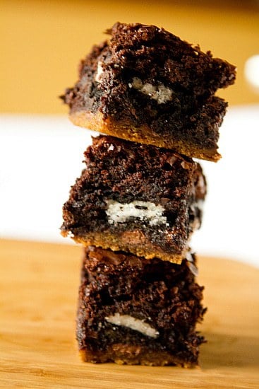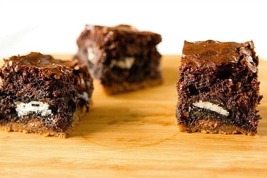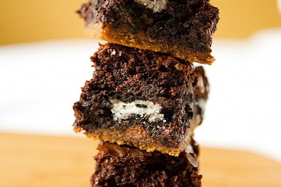 I make something similar to this in the brownie pan from the Papered Chef. I use premade cookie dough, oreo cookies and boxed brownie mix. If you make the brownie mix for a 9 x 13 pan you will need to make 2 batches with the brownie pan which make 12 individual brownies so everyone gets the crunchy edges.