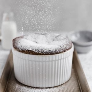 Below are a ton of tips on how to make the absolute best chocolate souffle, as well as notes on pan sizes, making it ahead of time, and storing it properly.