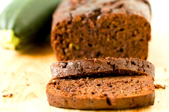 I had been poking around for a chocolate zucchini bread recipe for awhile before stumbling across this one. My mom said she remembered my grandma making some chocolate zucchini loaves on a few occasions, but we couldn’t find an actual recipe. I found a few others online that didn’t look quite chocolate-y enough for my very high-maintenance (read: like a 5-year-old’s) taste buds, and then last week this beauty popped up in my Google reader. I always love to see what the folks over at King Arthur Flour are baking up since they’re my favorite stop for ingredients and baking tools, and they knocked it out of the park with this bread. The chocolate flavor is deep and rich, the bread stays moist thanks to the zucchini, and the chocolate chips give it an extra oomph of chocolate flavor and really add to the texture. Almost everyone who tasted this agreed that it tasted like an incredible piece of chocolate cake. We even sliced some for dessert and topped it with vanilla ice cream! You could also go the route of my Double-Chocolate Loaf with Peanut Butter Cream Cheese Spread and eat it for breakfast. Both are perfectly acceptable serving options in my book!