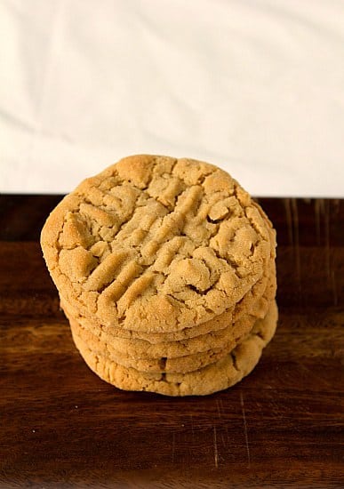 I have had a favorite peanut butter cookie recipe since I was a kid and baking holiday cookies with my mom. They are totally fabulous peanut butter cookies, which will always be a staple for holiday cookie trays. However, a few weeks ago I went to pick up my mom’s CSA bounty at a local farm, and they were selling a bunch of different homemade cookies. They had ginormous peanut butter cookies that I totally couldn’t resist. I bought one and started munching on it on my way home – it was a little crisper than I like my peanut butter cookies, but I loved that there were tons of peanuts mixed in.