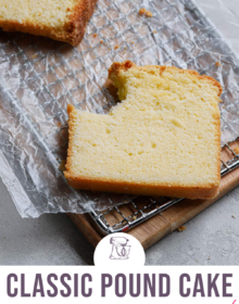 - Freezing– Double wrap the cooled pound cake in plastic wrap and then wrap in foil before storing in the freezer for up to 3 months.