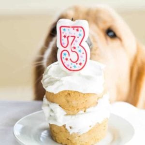 If youโve been following along here for any length of time, you know that I like to whip up a new homemade dog treat (or cake!)ย for Einstein and Dukeโs birthday. Since Einstein has now blown out nine candles(!) thereโs a pretty good archive of doggy treats if youโre interested!