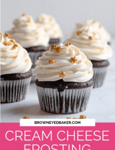 Cream cheese frosting is a tangy alternative to vanilla buttercream and will quickly become your new favorite frosting. It is thick, luscious, pipes beautifully, and you only need a few ingredients and about 5 minutes to make this recipe!