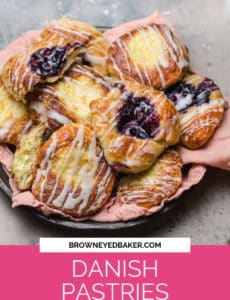 These Danish pastries are made completely from scratch (no puff pastry here!), taste like they came straight from the fanciest of bakeries, and are easier than youโd think. The topping possibilities are endless; choose from cream cheese, fruit, chocolate, lemon curd, or a combination of those! A perfect baking project for overnight guests or special breakfast or brunch.