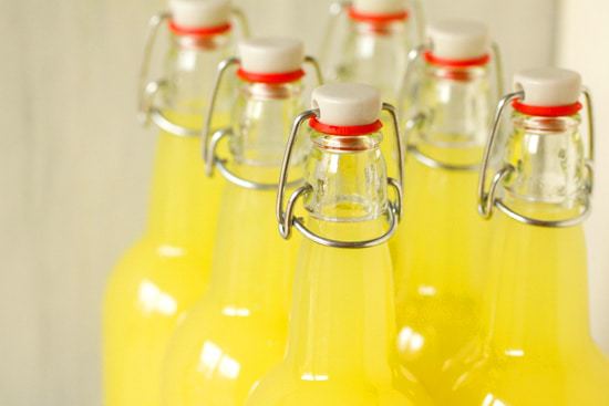 A few months ago, my Chief Culinary Consultant and I stopped by my grandparents’ so he could bring them a few summer squash from his garden. We ended up staying for a few hours, playing some cards and eating snacks. I’m not sure how it came up, but my grandma started telling us about her neighbor who makes his own limoncello, and that he had recently brought them a bottle, which was in the refrigerator. My grandma had his recipe, but had never tried making it. Needless to say, I immediately asked for the recipe. My Chief Culinary Consultant and I thought it would be a fun project and would make great Christmas gifts!