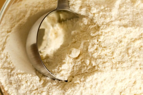 - In the bowl of a food processor, combine the sugar, both flours, milk powder, baking powder and salt. Process for 15 seconds. Add the pieces of butter and lightly toss with a fork so they are coated with the flour mixture. Sprinkle the vanilla over the top. Pulse until the mixture is fine and crumbly, about 10 one-second pulses. Use immediately or store in an airtight bag or container in the freezer for up to 2 months.