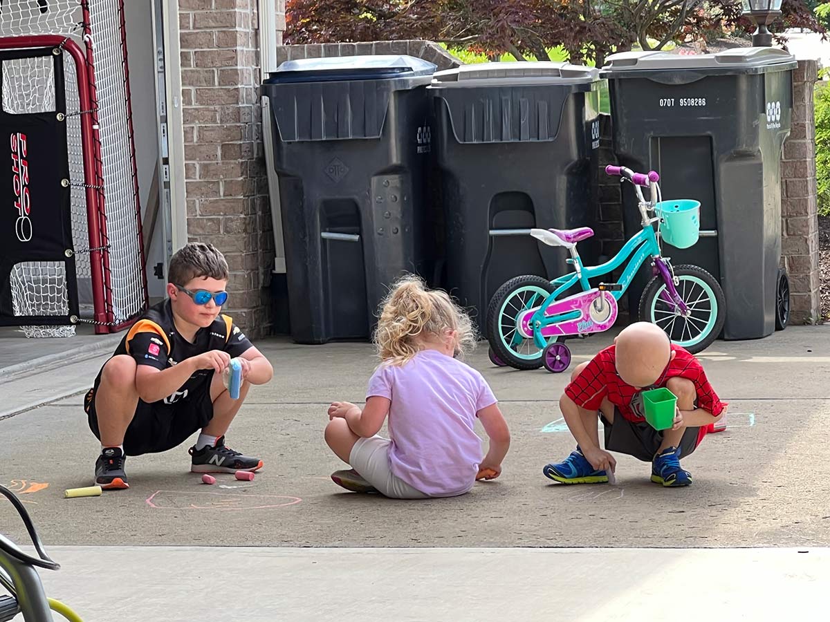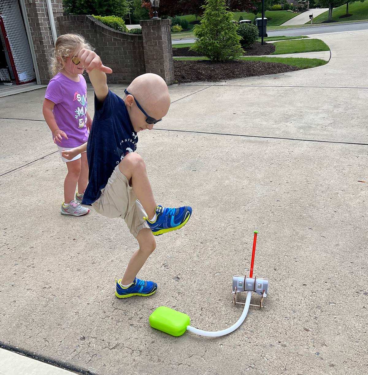 The surgeon indicated that full recovery will take about two months, but that walking and gentle exercise is great for him, so he started by walking our driveway and cul de sac and got back on his pedal kart bike (bike riding was doctor-approved) for some easy rides. He has gradually regained a lot of energy, as well as range of movement, and is riding his bike faster and is up and playing like normal.
