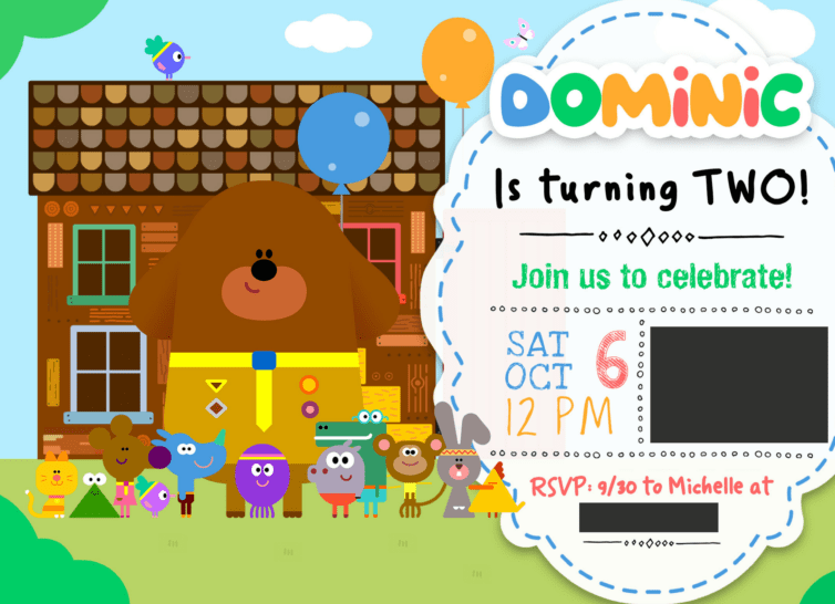 I did manage to find Hey Duggee custom invitations on Etsy, and had those made for the party: