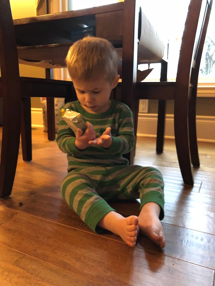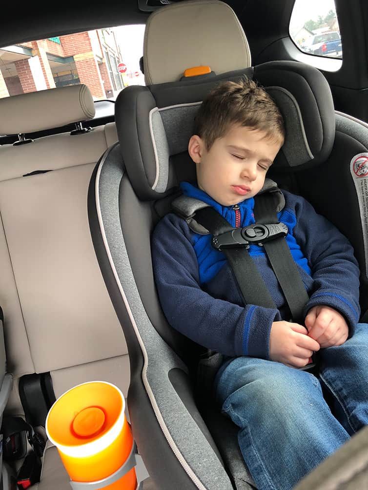 Kicked off the weekend on Friday with curbside pickup at the grocery store because, at nearly 39 weeks pregnant I was not about to brave the grocery store on Good Friday afternoon. Itโs less than a 10-minute drive, but Joseph had apparently been worn out by his swim lesson and lunch!