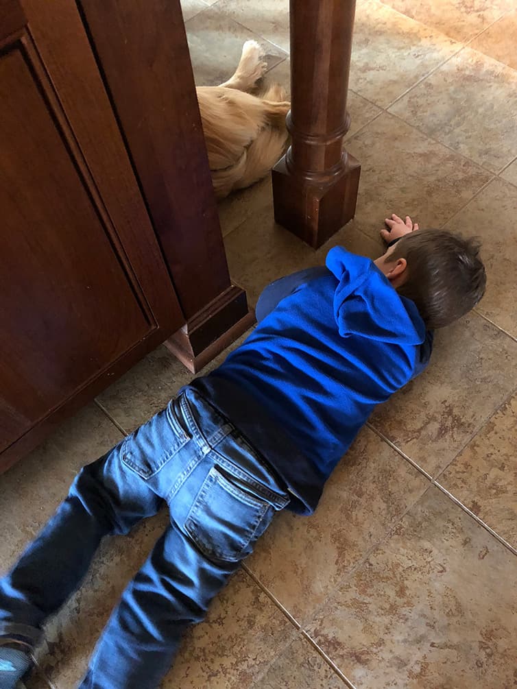 When he falls asleep in the car and then gets woken up, he isโฆ rather unpleasant, to put it mildly, HA. Re-entry takes awhile and he eventually just laid down on the kitchen floor.