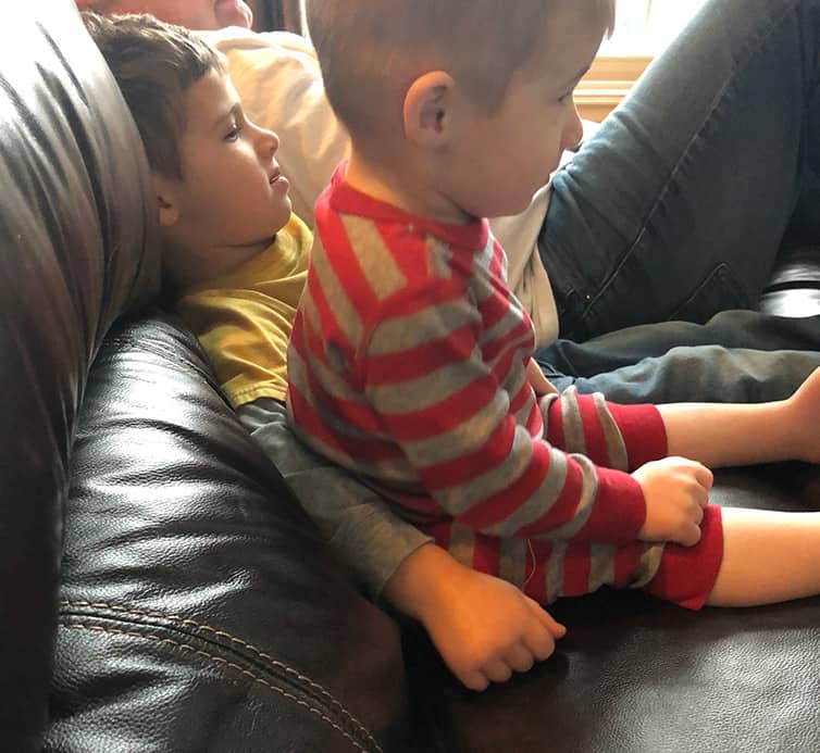 it strikes me every time I see pictures of your beautiful family how much the boys love each other. You have done such a great job fostering that in them. That picture of Joseph with his arm around Dominic โ so precious! And his freedom to just zonk out on the floor โ I laughed out loud at his adorable-ness. And their love and ease around the dogsโฆ oh, I could go on and on. You look radiant at 39 weeks. How exciting! God bless you and your whole family during these last few days and when you bring your daughter home. You have a lot of people on the BEB team rooting for you!