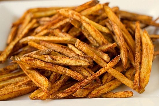 Yum! Love homemade fries! We like coarse salt & freshly ground pepper on ours. I also put mine under the broiler for 1-2 minutes at the end to get them a little extra crispy.