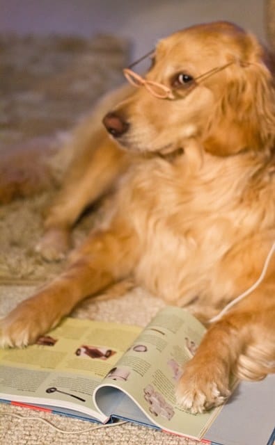 3. Speaking of Einstein, I had some fun with him the other night. We propped a cookbook under his paws and threw some reading glasses on his mug. He stayed still for approximately 5 seconds, which was long enough for me to snap a couple of photos, including this one where he looks utterly annoyed with me: