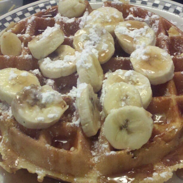 2. Since Instagram is now available to the Android users of the world, you can find me there! Iโm under โthebrowneyedbakerโ โ give me a follow and youโll probably see a lot of pictures of food and my dog. Case in point โ my massive banana waffle breakfast last week: