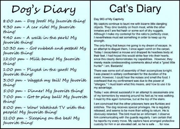 4. Have you seen this Dogโs Diary vs. Catโs Diary? Absolutely hystericalโฆ so spot on, and the catโs entry makes me laugh so hard I cry!
