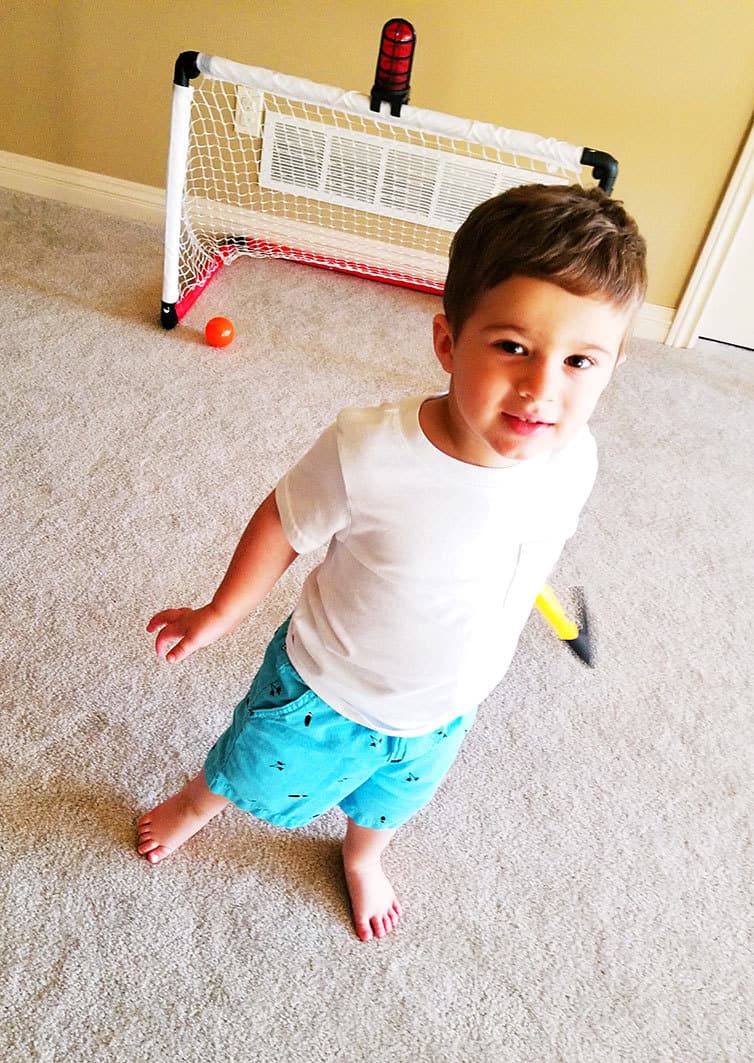 Heโs also been pretty obsessed with hockey since we were watching a lot of here over the last few weeks, so my husband got him a little hockey set for in the basement and that is all he ever wants to do. He wakes up asking to go play hockey, after breakfast, after/before ANYTHING, he wants to go play hockey. Love!