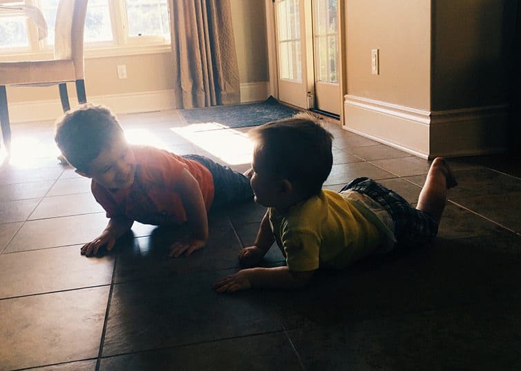 1. Watching these two play together has been an absolute dream lately; they enjoy each other so much and I am so grateful they have one another. Joseph woke up sick on Wednesday morning and was pretty miserable most of the day except for when he was playing with Dominic – his little brother can make him giggle and belly laugh like no one else. (When I snapped the picture above, Dominic was repeatedly trying to climb on top of Joseph and kiss his face.)