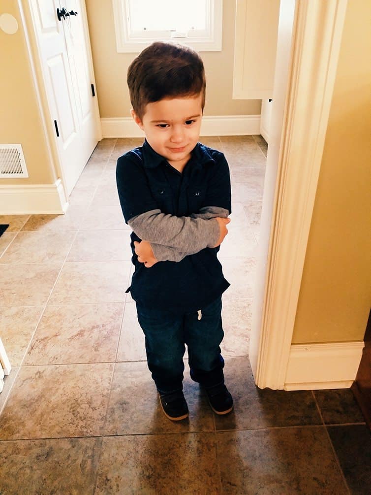 (We took this picture before we left for his second day of school; heโs not always a fan of having his picture taken!)