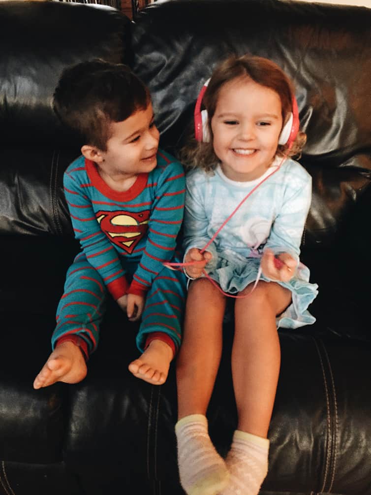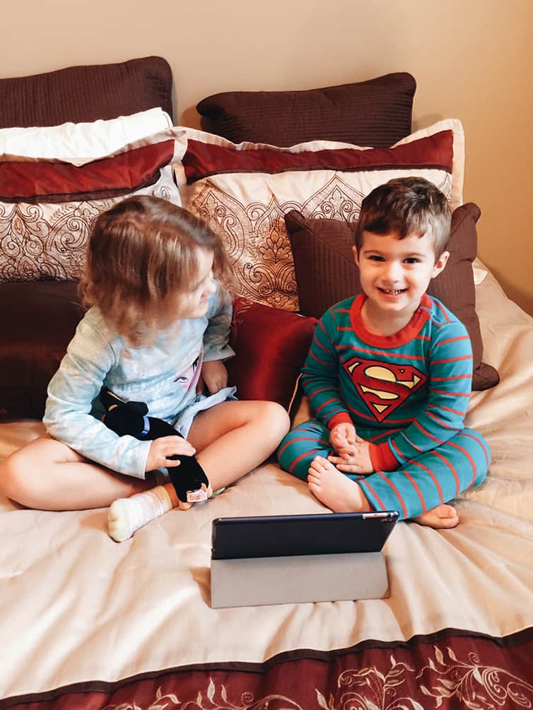 I love how enamored Joseph is of their little girl, Della. This is the second time theyโve visited in a year, and the two of them just play together non-stop. Since they left on Sunday, Joseph has asked every day if Della can come visit again and if she can eat dinner with us. Dominic took a little while to warm up, but by late Saturday and Sunday morning, he was chasing the two of them around and playing, as well :)