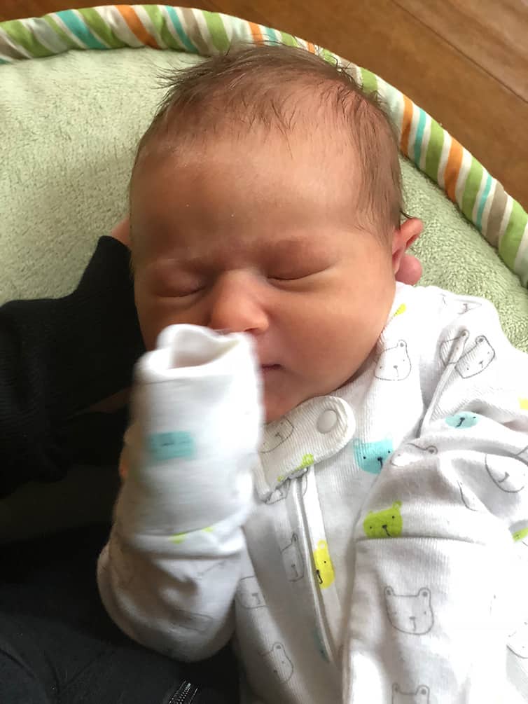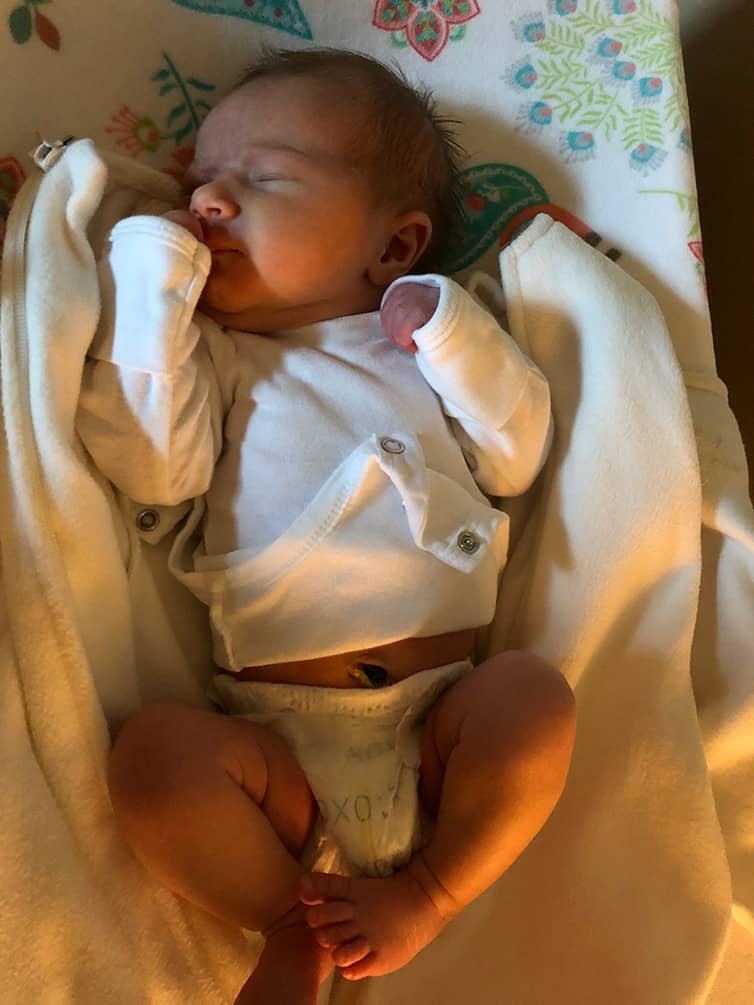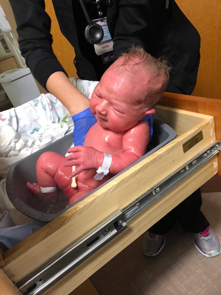 We had deja vu of Joseph’s birth because as soon as the nurses saw her, they were hooting and hollering about her chin dimple just as they had when he was born. She was born with a full head of hair, but unlike her brothers, who had dark brown hair, she is sporting very light brown hair. I’ll be anxious to see what it eventually looks like! And LIKE both of her brothers at birth, she has blue eyes. Joseph’s eyes have since gone to dark brown and Dominic’s are now hazel.