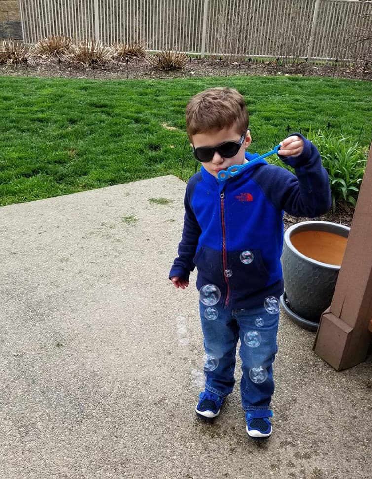 Iโve loved seeing Dominicโs personality really shine and blossom over the last few weeks. Itโs been so interesting for me to see how different he is from Joseph (and similar in many ways โ they both love routine and order!) and learn how to cater to his individual tastes. While Joseph was always very serious and liked quiet activities (reading books, building towers with blocks, etc.), Dominic much prefers to be active, silly and laugh. He LOVES to be chased and giggles non-stop, and thinks that scaring us with toy dinosaurs is the funniest thing ever. Iโm so looking forward to getting back to swim class with him and also seeing how he likes music class this summer!