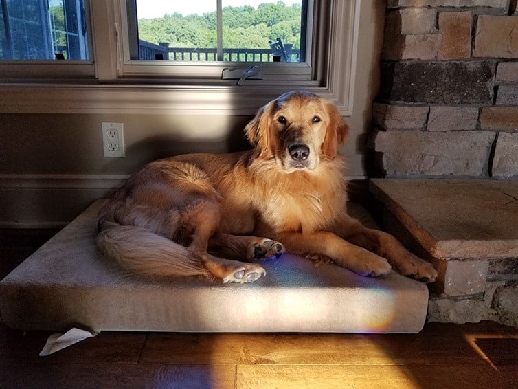 Their two Goldens were opening the doorโฆone of them knows how to work the doorlatchโฆ and โencouraging โ her to get out of her bed and leave the room. It is too funny.ย