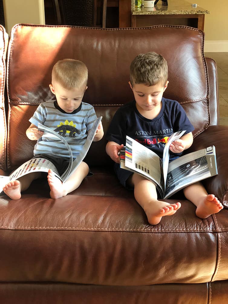 2. The boys have been LOVING helping with laundry. Joseph has always liked to help, and now Dominic is in on the party. When I head into the laundry room, he runs after me and says, โhelp? help?โ As I sort the clothes, I throw on the floor what needs to go into the washer and they put it in, then they help transferring the clothes from the washer to the dryer. Hopefully their love for laundry continues and will make a couple of ladies very happy down the line ;-)