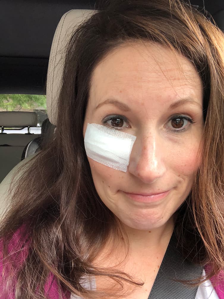 5. Last week or the week before I mentioned that I made my annual trip to the dermatologist and had two small moles removed. Well, the biopsy on the one under my eye came back as a basal cell carcinoma, so I had Mohs surgery performed this week. Itโs basically a procedure (in the office) where they take a little more tissue from around the initial spot, and then examine the slides in a lab in real-time to see if there are cancer cells extending beyond the margin of the tissue that has been taken. If there are, they go back and take a little more. My mom and aunt have both had this procedure, so I was familiar with it. Sometimes it only takes one pass, but other times it can take three or more. I was fortunate in that they were able to remove it all with the first pass, so not TOO big of an area had to be removed. Iโve had a pressure bandage on since Wednesday and will remove it today, hopefully the scaring will be minimal.