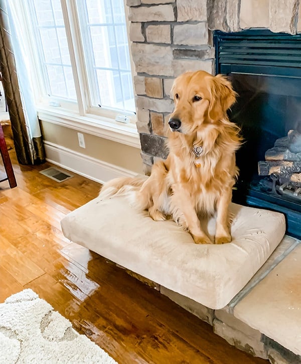I love that your dog a-lays on her bed and b-lays on your hearth. We got our dog a bed once and put it in her spot and she wouldnโt lay on itโฆshe laid next to it so she could still see out the window!