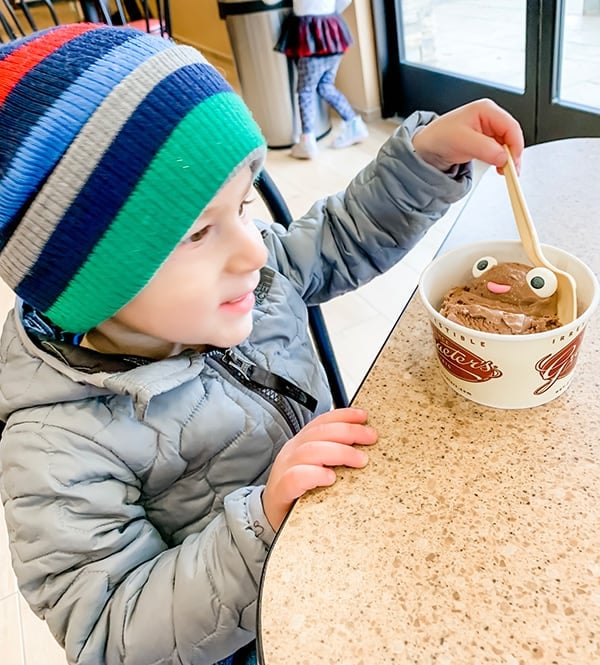 3. Last weekend, Joseph went to the Pittsburgh Auto Show with my husband and father-in-law (he was in heaven!), and I wanted to do something special with Dominic while he was gone. Since ice cream shops are on the big-fat-no list with Josephโs nut allergies and Dominic LOVES ice cream, I bundled up him and Isabelle (it was in the 20โs, haaaaaa) and went to the local Graeterโs for a cup of chocolate ice cream. He had SO. MUCH. FUN. I love being able to spend some special time with him, and I think he loves having all of my attention (even though Isabelle was with us!).