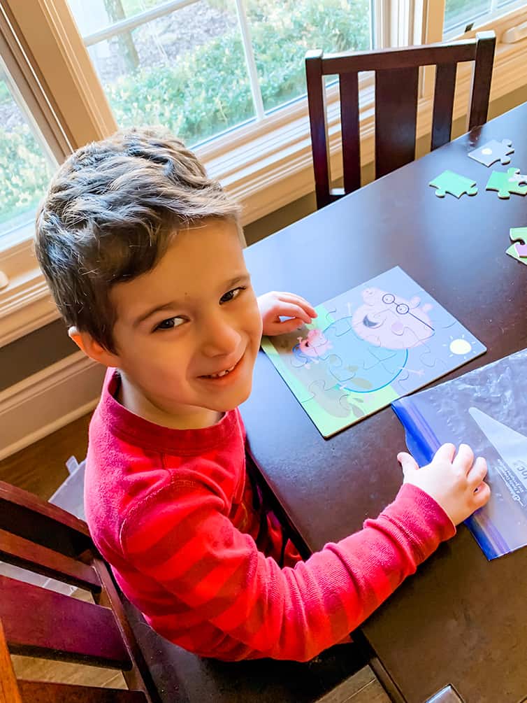 Oh, I need to know where you got the Peppa Pig puzzle he’s working on – my 2 year old is obsessed with Peppa!