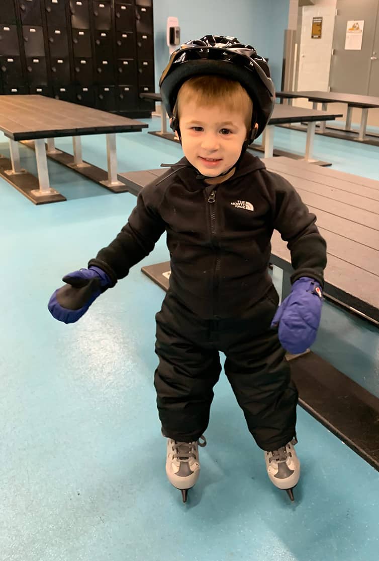 2. We got Dominic on skates this week to see if heโs ready for lessons! He was super wobbly at first, but was much steadier by the end, could stand on his own, and was able to walk on the skates back to the benches to change. He was SO excited and had so much fun. Josephโs instructor said we could have him come on the ice at the end of Josephโs lessons to continue getting him acclimated.