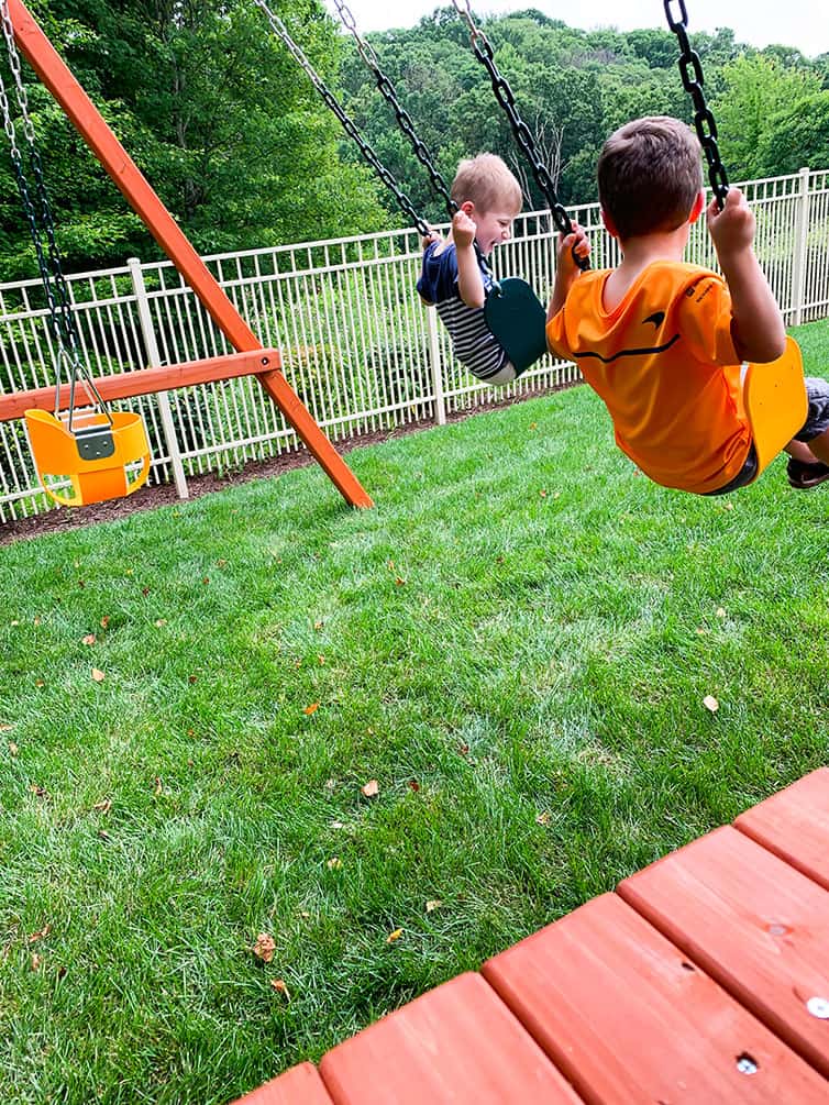 2. We also got a playset for the kids and it was installed last week. They are in LOVE with it. Itโs simple โ swings, a slide, a ladder and rock wall, and my favorite part โ a picnic table underneath the clubhouse area up top. Shade for mommy :) Theyโve been playing on it as much as possible and this week when it was sweltering outside, my husband took the hose out and turned it into a waterslide for them ;-) They had a ball.