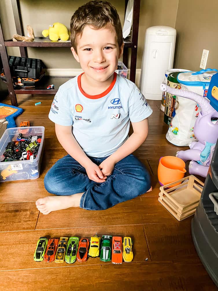 1. Joseph can’t get enough of school stuff, he asks for worksheets that get sent via email from the teachers and wants to learn all the things. A few weeks ago in his Zoom class they learned about patterns, so now he begs my husband to give him patterns to line up his cars ❤️️