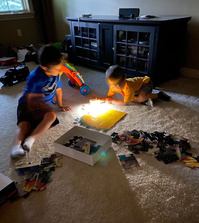 3. A couple of nights ago we lost power for a couple of hours between dinner and bedtime. We hung out in the basement where it was nice and cool and the boys built puzzle after puzzle together on the floor. Loved seeing them work together and get along so well!
