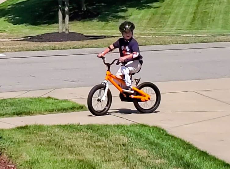 3. Joseph has officially ditched the training wheels! He wanted to try a few months ago and he was kind of scared and wobbly and asked for them back on. Then he wanted to try again a couple of weeks ago and he literally just took offโฆ he was ready! The first few times, he wanted to ride with his hockey elbow pads and shinguards but then got rid of those, too. Heโs so proud of himself and has been having so much fun.